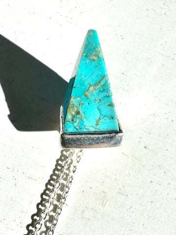 Turquoise Pyramid Stone Silver Necklace